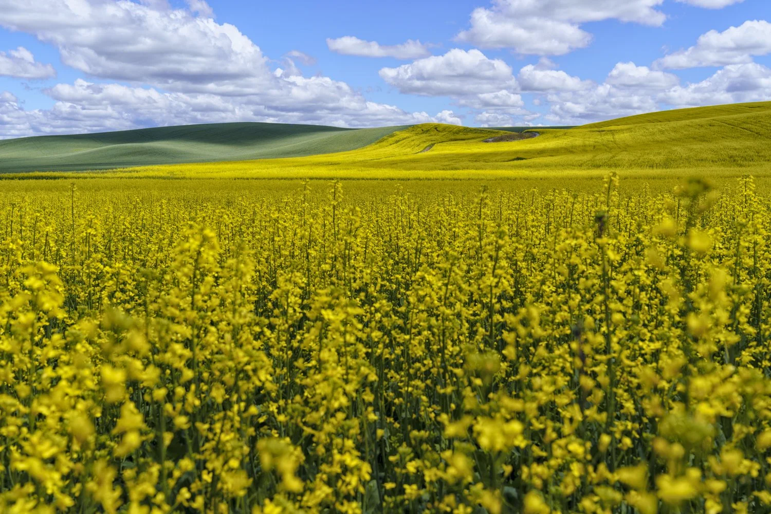 It is the farming stronghold of many American crops, including the bright yellow of blossoming canola each spring. At dusk, it often reveals an impressionistic natural world – various tones of yellow, green, and gold dapple fields, especially from the viewpoint of Steptoe Butte, looking towards eastern Washington.